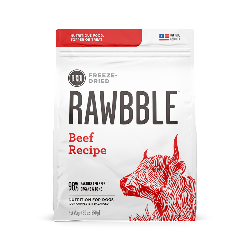 Delicious and nutritious, Rawbble Freeze Dried Food for Dogs combines the whole-animal nutrients of a raw food with the convenience of kibble. Rawbble is 98% meat, bones and organs to provide your pup with a healthy source of protein and to help give them healthy teeth and gums too. When foods are cooked, they lose a lot of their nutritional content. But Rawbble uses freeze-dried technology to lock more naturally sourced essential nutrients into every bite. Use as your pet’s whole diet, crumble some on top of their other food, or as a high value treat for training. Comes in 3 sizes and 4 flavors; Beef, Chicken, Duck, or Salmon + Chicken.